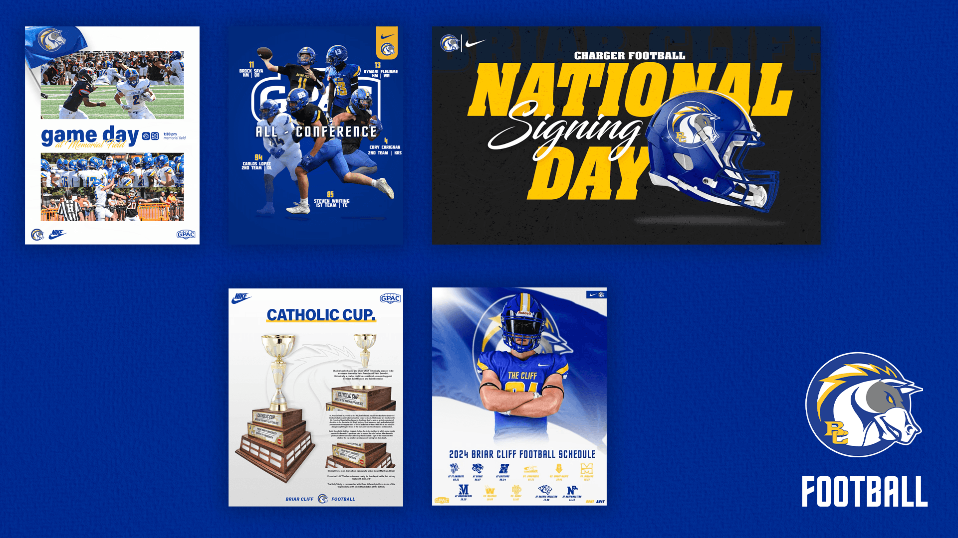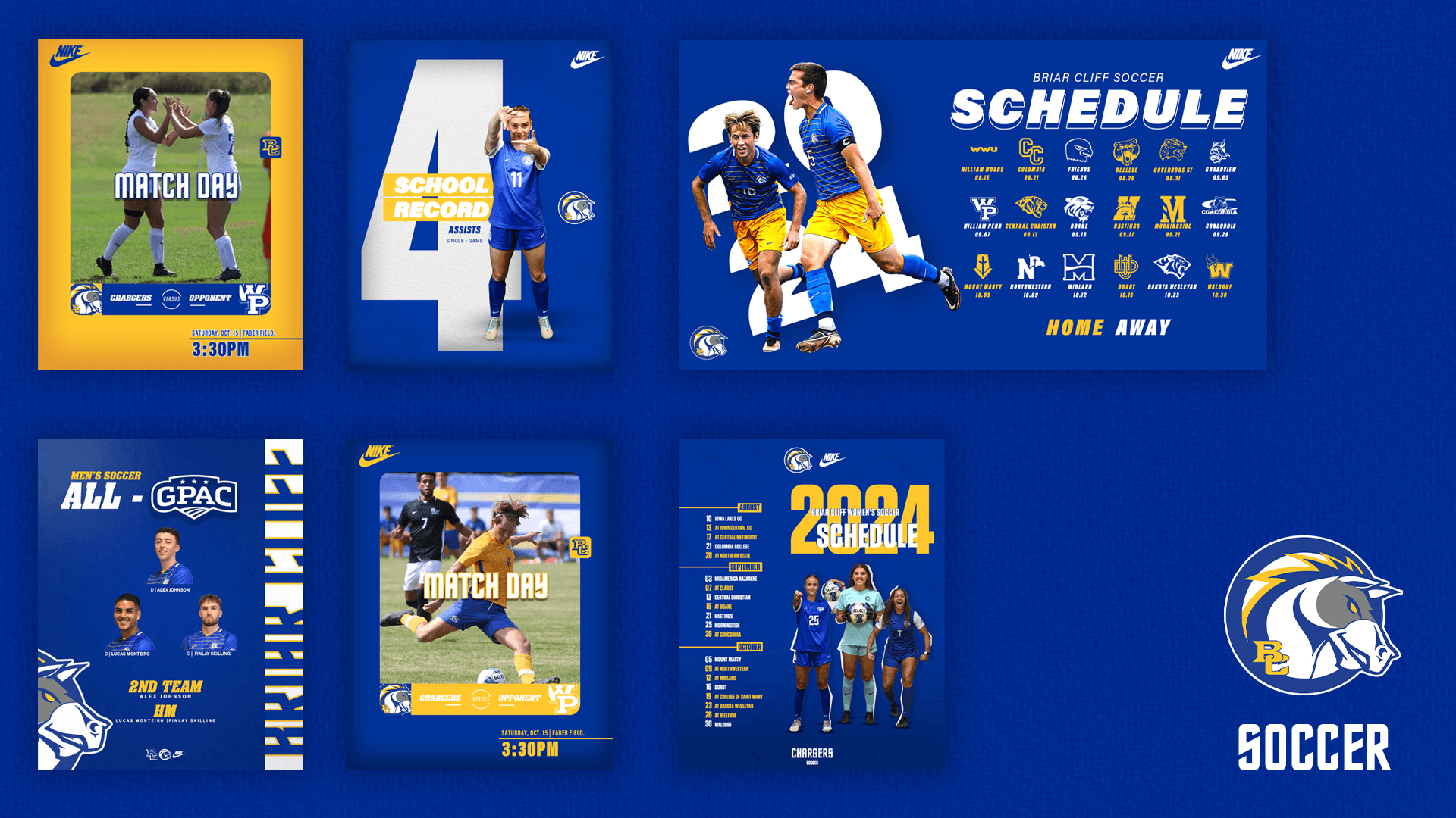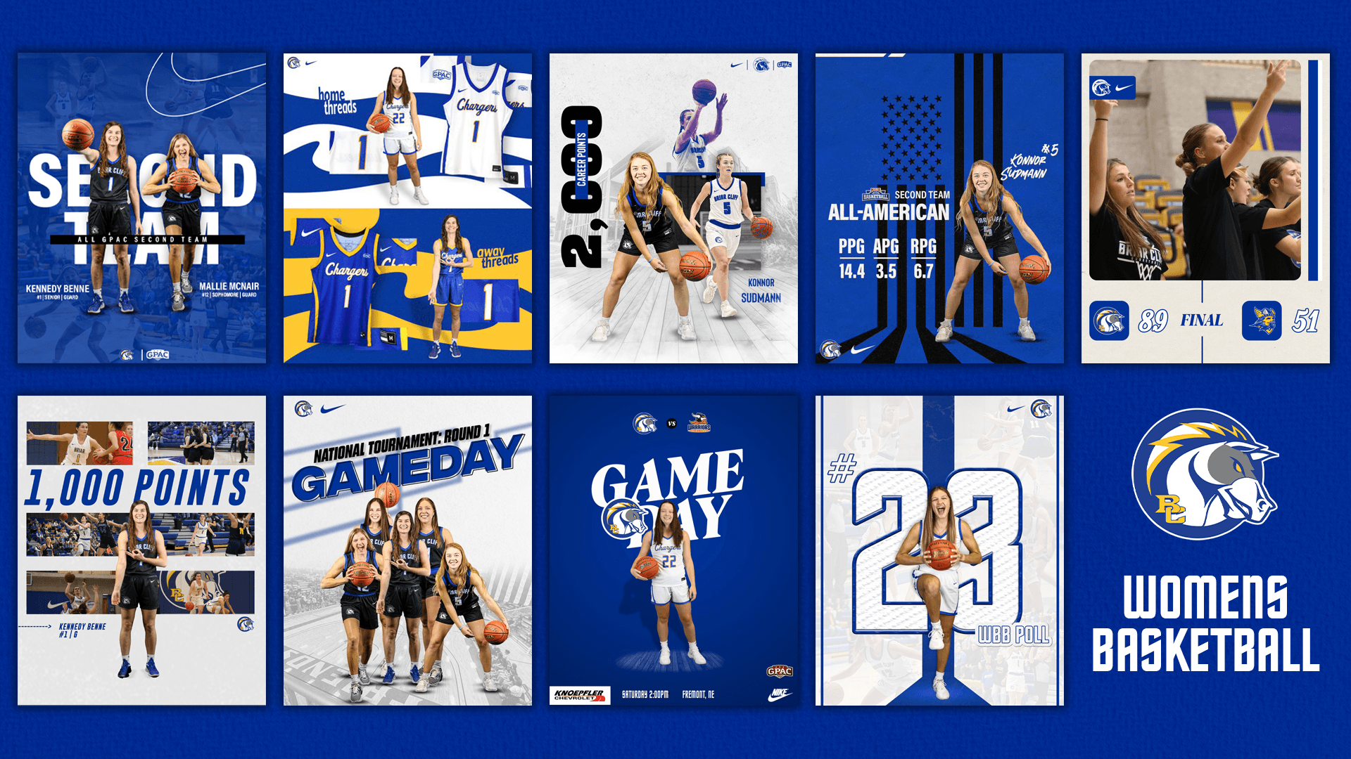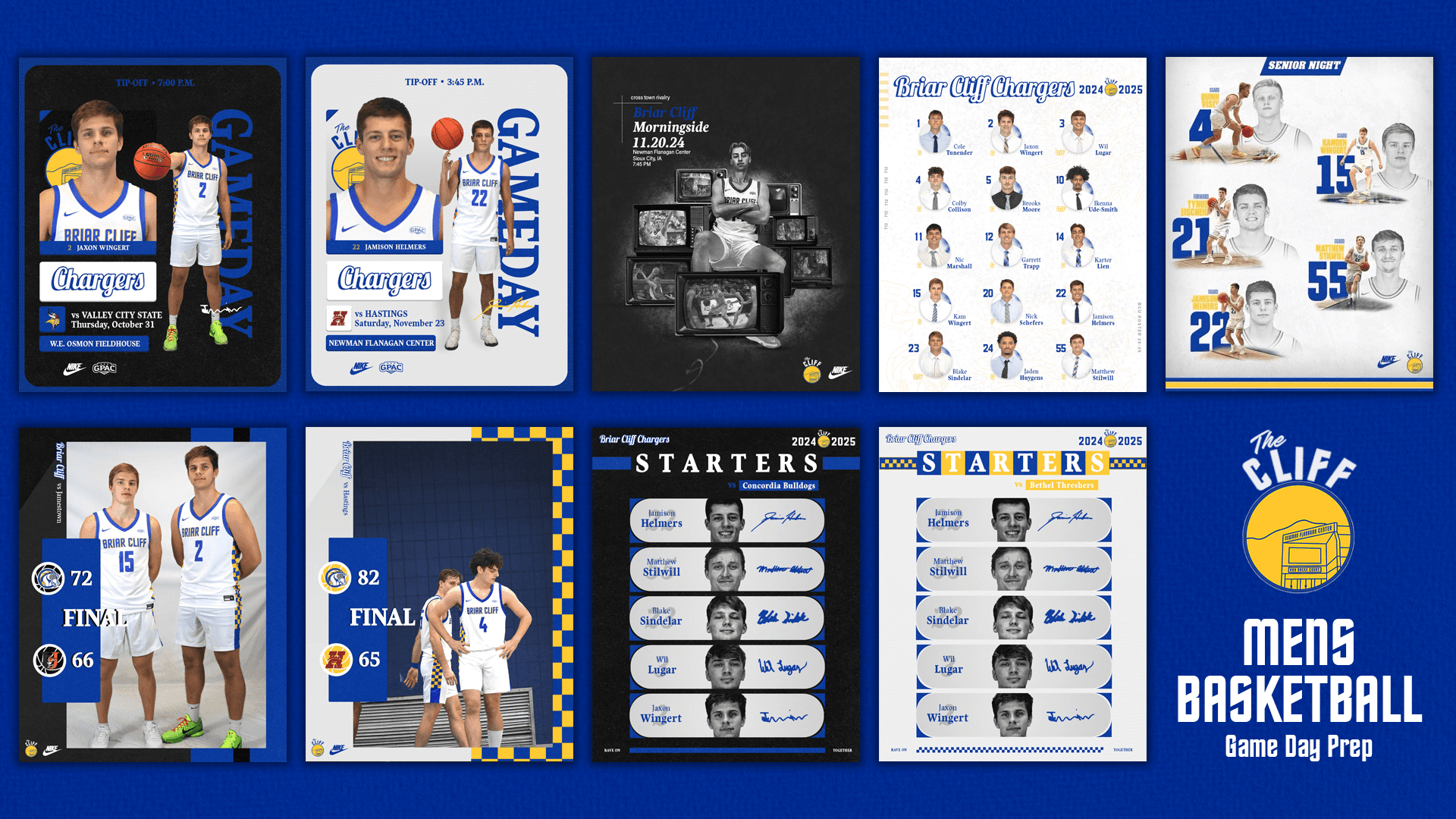 During my second year as a Graphic Design Intern with the Briar Cliff University Athletic Department, I continued to support all sports on campus by creating digital graphics for social media and game-day promotions. I regularly used Adobe Photoshop to design sports graphics such as game-day posts, player highlights, final scores, commitments, awards, schedules, starting lineups, and roster announcements.