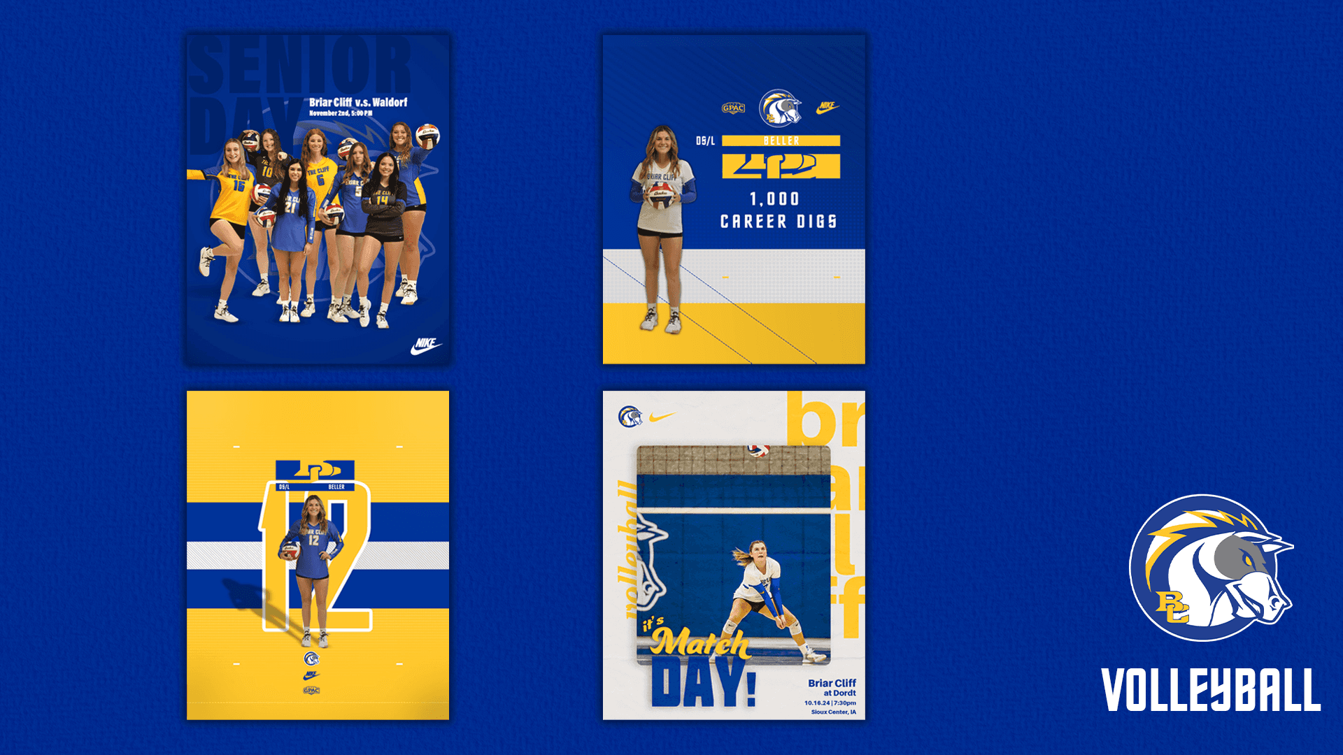My second year with Briar Cliff Athletics allowed me to grow both creatively and professionally by taking on greater responsibility and a wider range of projects. From social media graphics and vector logos to live event coverage and formal presentation design, I gained hands-on experience that closely reflects real-world sports design work. This role reinforced my passion for graphic design in athletics and further prepared me for a career in creative communications within a collaborative, deadline-driven environment.